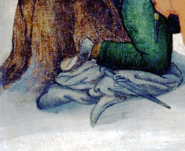 where you can see the wound inflicted by Zeus' sword and