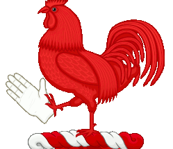 A cock Gules holding
