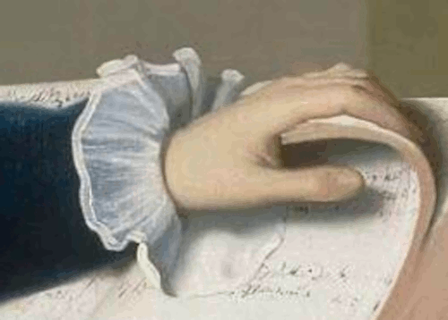 - Unlike how it is depicted in a famous painting that shows a gaggle of patriots witnessing the event. - Put your John Hancock right there!
