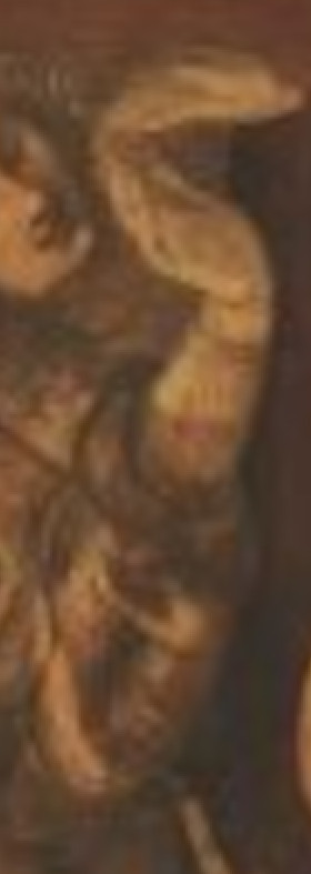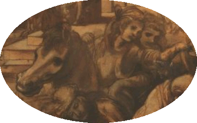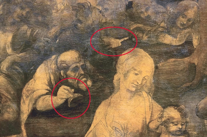 DaVinci's - Most historians agree that the standing figure on the extreme right, looking out of the frame, represents Leonardo. The figure standing in the opposite corner, described by historian Joseph Manca as “the unseen scholar” and a philosopher “in the broadest sense” is there to represent Julius Caesar, like his namesake Giuliano de' Medici, assassinated by multiple stab wounds – 23 in total. Nineteen knife wounds were inflicted on Giuliano and a sword also cleaved his head. (arnolfinimystery.com)