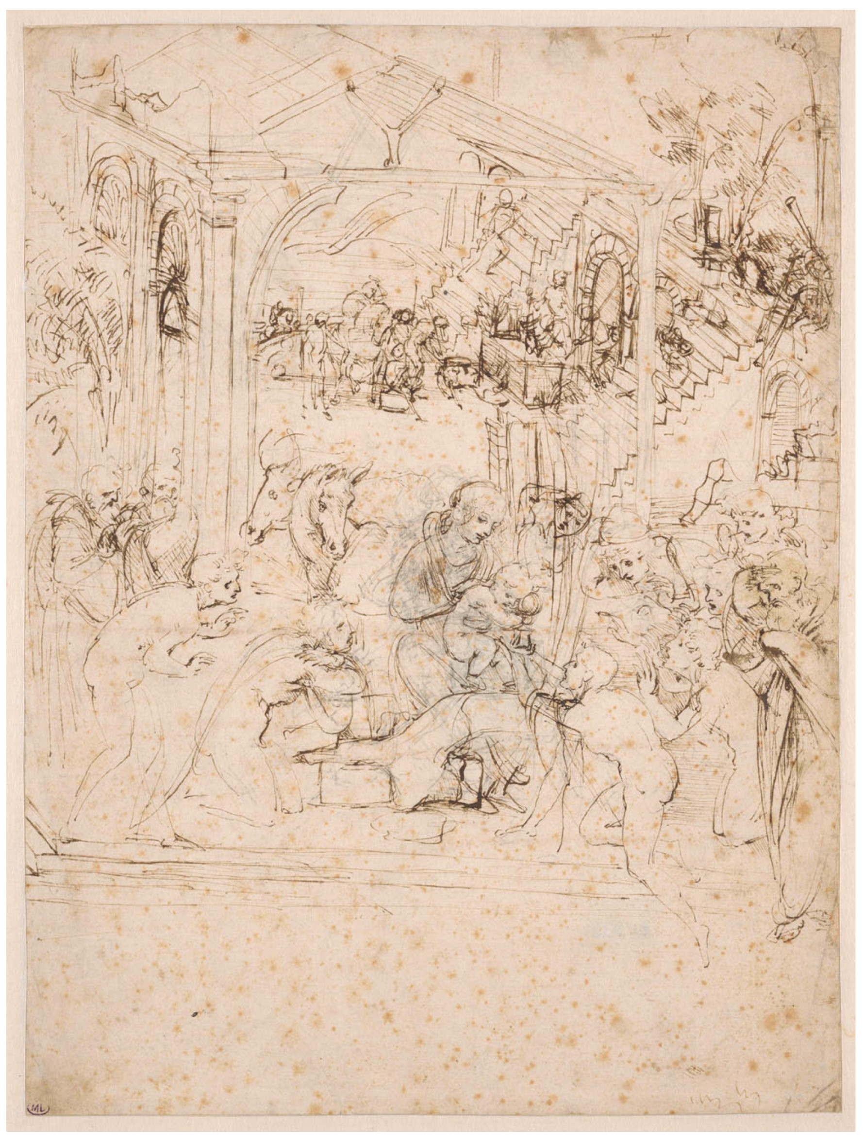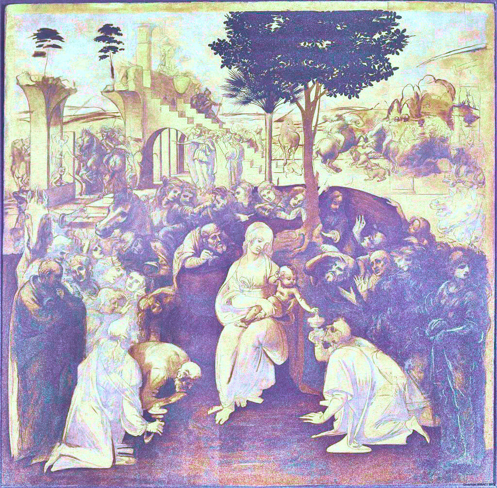 between Leonardo’s Magi painting and the version featuring the