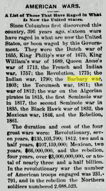 Indian war of 1790, the Barbary war of 1803, the