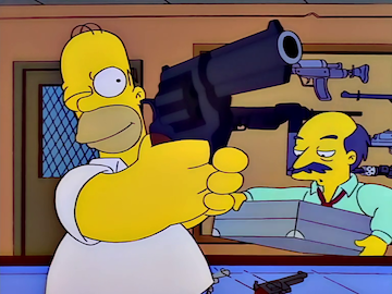 In the episode, Homer purchases a gun to protect his family, of which Marge disapproves.