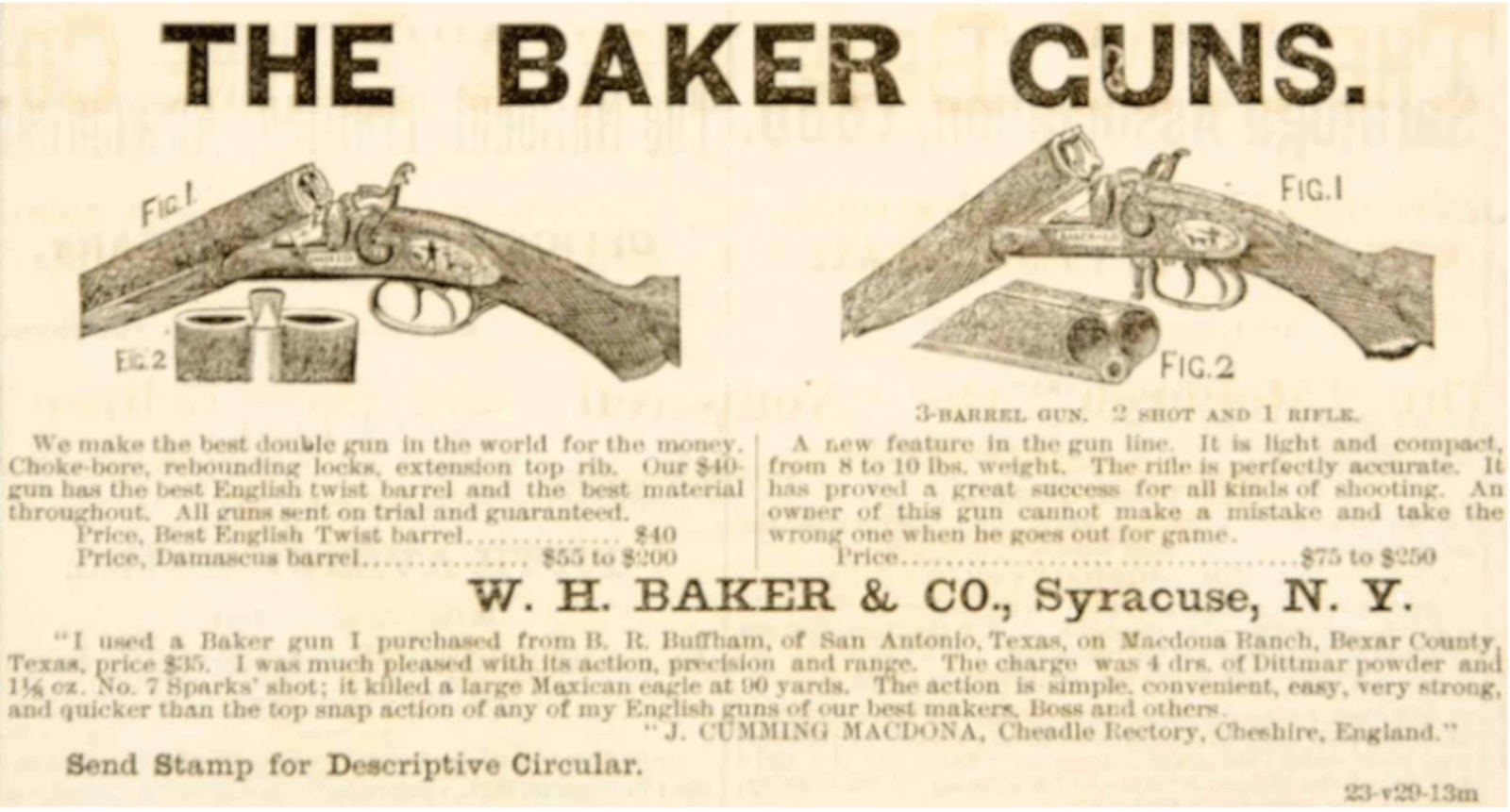 - W.H. Baker and Leroy Smith left the firm in about 1880, and, with several associates, established the Ithaca Gun Company.