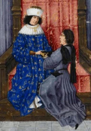 Jean de Wavrin pictured on his knees presenting his work to Edward IV |