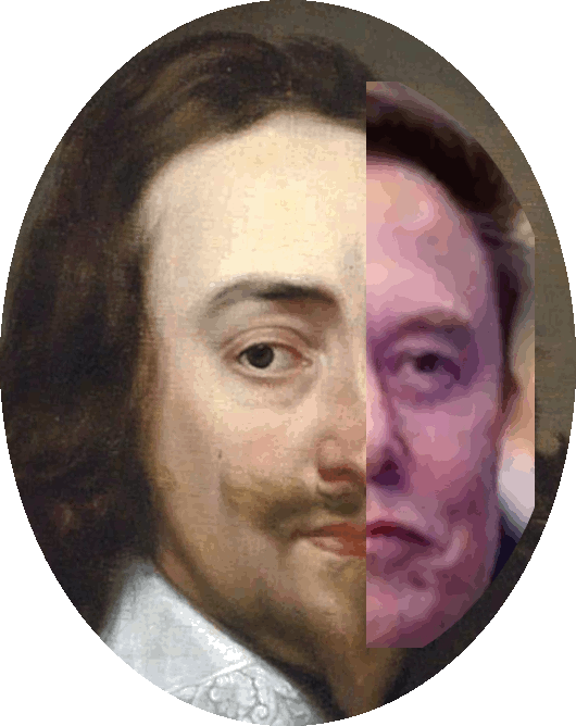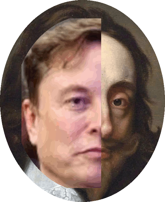 - Charles I as Oliver Cromwell. - Oliver Cromwell as Elon Musk. -